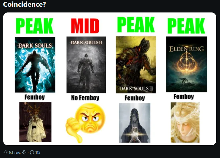 >>50480922 Факты говорят о том, что у соулсовщины хуета вместо лора. Просто дыра на дыре, залитая гумозными соплями нетакусиков с буйной фантазией, которая порождает кучу срачей даже тут, потому что видите ли кто-то неправильно из пальца высосал. >На их мнение - похуй Мнение анона с двача точно так же не котируется, не обольщайся.