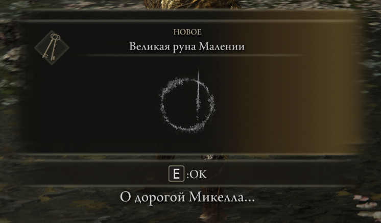 >Затем, после твоей кончины, я заберу то, чем некогда обладала. Возвращайтесь в Междуземье, на войну, и да поможет вам Кольцо Элден. Не страшитесь смерти, воины Годфри, моего повелителя.