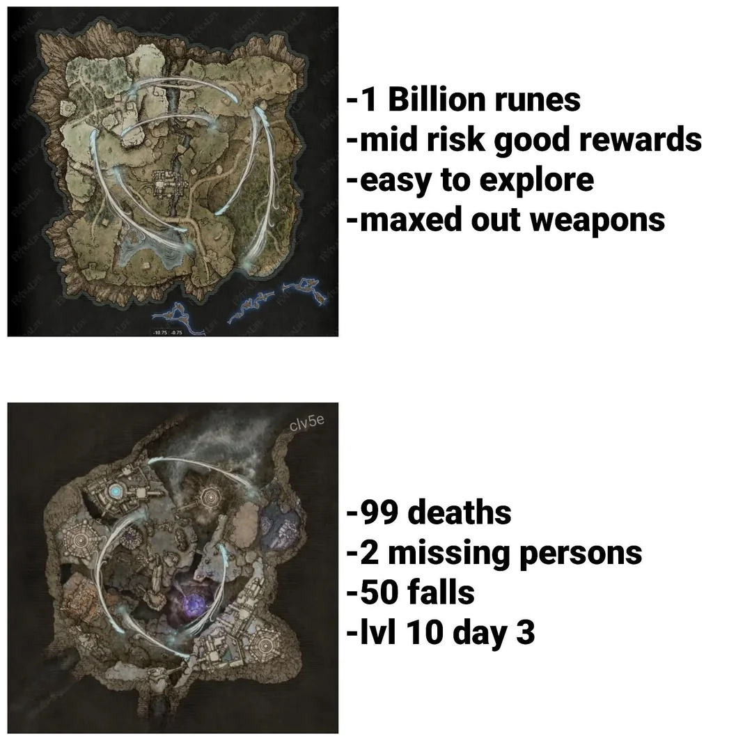 >>50522713 >то что ты описываешь было очень давно плюс он раздал силы Не раздал, только часть, и по времени прошедшему ни слова не сказано. >элден ринг, а также длс Километровых пустых полей там нет, есть частично пустые на вершинах великанов, где все давно передохли. А так наполнение контентом там хорошее, не заебывают активностью каждые полминуты, мир более связный, как подземелья с наземной частью, так и сами биомы. >размер деревни В игре есть деревни, они куда меньше. Столица для раннего средневековья именно что столица по размерам.