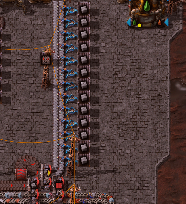 пытаюсь придумать как в смелтер запихнуть 3 предмета при этом используя длинный инсертер только для одного предмета и будучи ограниченным красными белтами... на вывод длинный инсертер наверное тоже хуйня