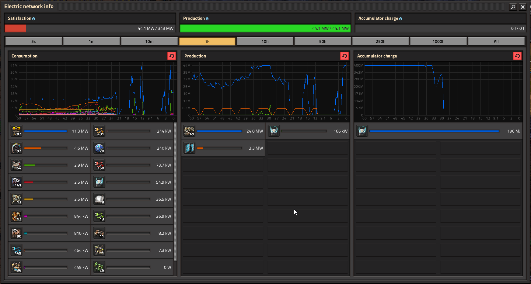 >>50528267 >>50528279 Лазерки, говорю же. Просто похоже на графиках не рисуют виртуальные, то что хочет взять в долг. Т.е. оно уйдет в плато максимально доступной энергии, а хочется им вот 300МВТ, для зарядки. + дронстанции тоже хотят кушать, ты строишь наверное там что-то еще сверху.