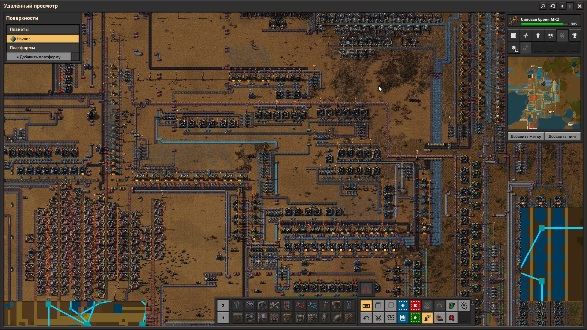 >>50468849 Делаешь всё с синей науки и ядерку/двухэтажное жд с фиолетовой, копаешь немного сочного урана и всё, можно валить на вулканус. Всё нужное отправить вверх, всё ненужное сложить в ящики поставить турельки на всякий случай (если добро сложено около спавна, то жуки туда в ближайщие несколько сотен часов не заглянут), поставить несколько солярок и возвращаться только после аквиллы.