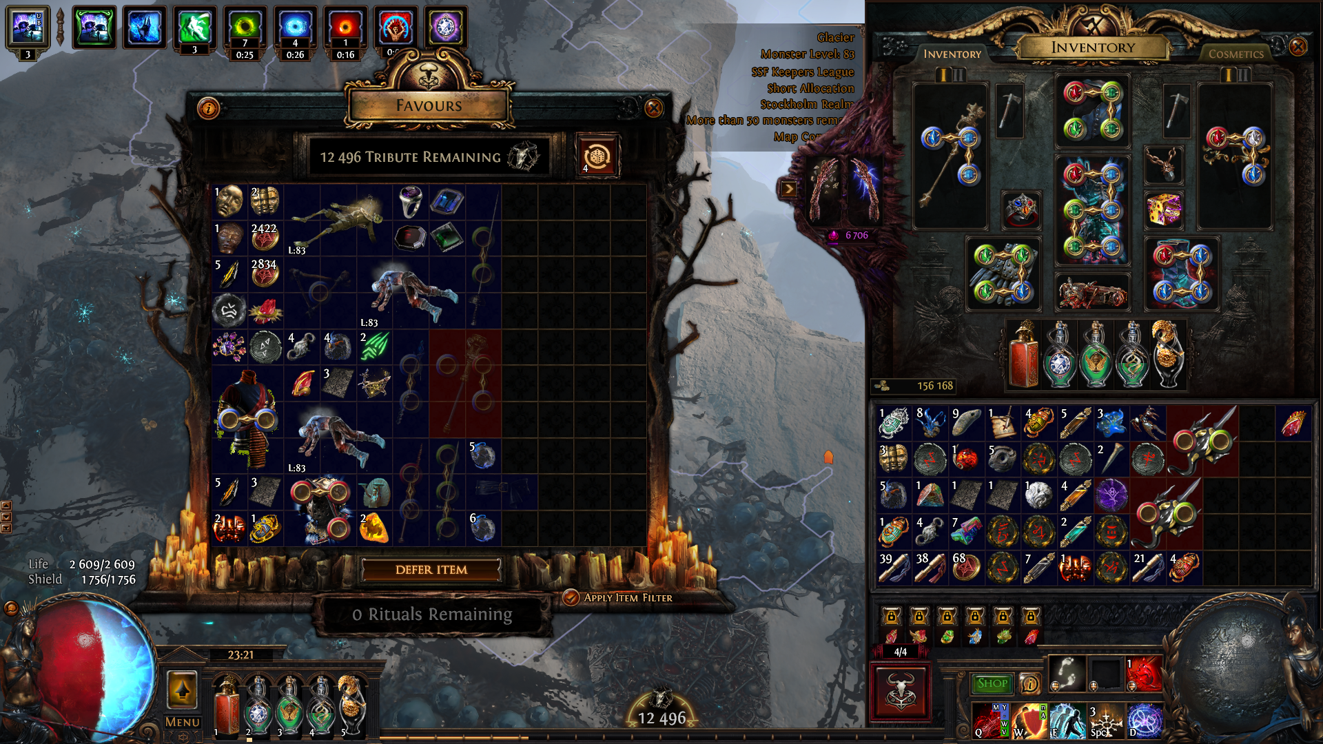 TLDR: Total investment was 91.12 divines, final result is -32.57 divines.