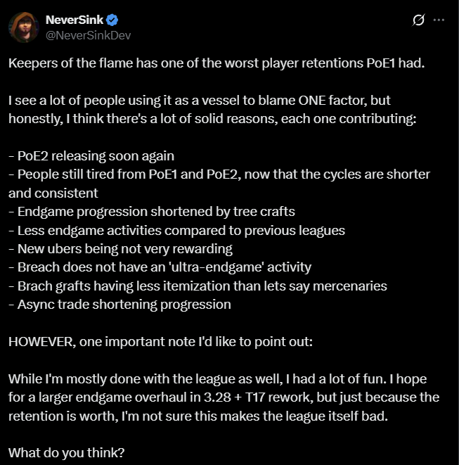 в общем что я хочу сказать, в пое очень давно уже принципиально ничего особо не меняется, все уже какой год однии и теже лигмеханики фармят, почему так?
