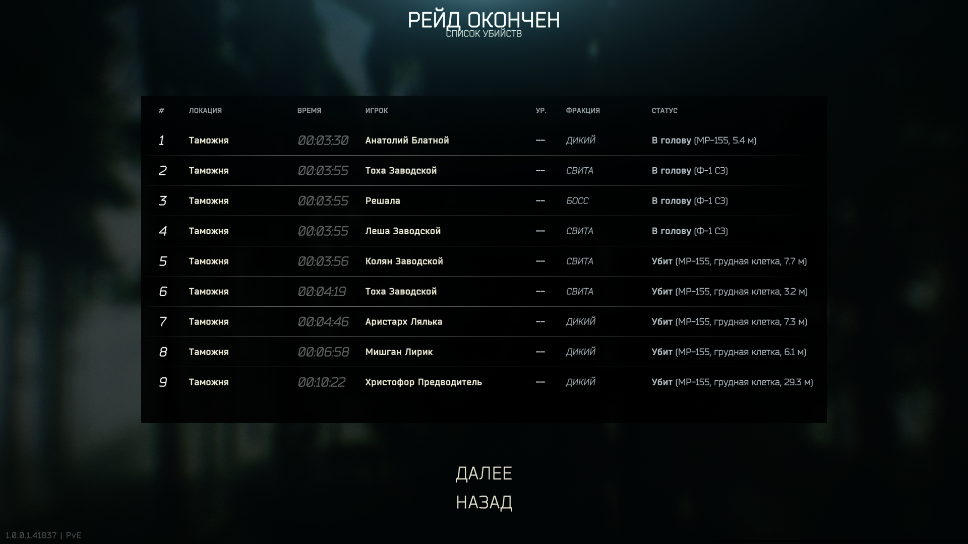 >>50468519 >Сходил в рейд за дикого >ебнул босс >во второй рейд ебнул другой дикий игрок >потом закинуло за 5 минут до конца, вынес сайгу и разгрузку на 15к максимум