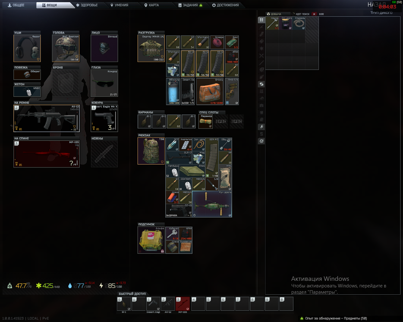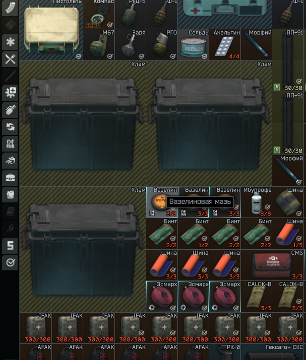 >>50468541 Отсутствие наушников = инстасмерть, лучше вообще не выходить в рейд, чем выходить без ушей. Любой армор ниже 4 - в мусорку, он не работает против игроков, только против диких, и то не всех. Любой ствол без авторежима огня - в мусоркую Любой патрон ниже 25 пробоя - в мусорку. Жопу набиваешь аптечками, бинтами, шинами, и обезболом. Весь шмот, которые не черный, и не зеленый - в муосрку, тебя видно за полкилометра. Рюкзак на ЧВК на старте рейда - не нужен, в мусорку. Хороший разгруз вместит больше чем дерьмовый рюкзак. Диктофон - выкинь нахер. Ну и патриков набери чисто в карман. Когда в магазах закончатся, как воевать будешь?