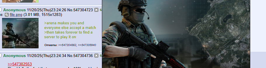 >>50474907 >Увеличь количество ЧВК на рейд в таком случае. Как раз меньше серверов будет нужно. Все и так работает оптимально. >Ага, на тех самых стримерских серверах, куда подпивычей с ХДДшниками не пускает? Нет, на серверах с гарри поттером, инопланетянами и египетскими проклятьями. Прекращай нести хуйню уровня рен-тв >Да, только при этом ты можешь заниматься сборкой в рейд во время поиска, а не до поиска. Поиск может длится 10 секунд всего. Ты за это время даже яички свои в мошонку не соберешь. >А у тебя собраться в рейд занимает больше минуты-двух? Да, иногда занимает. Потому что иногда надо собрать пушку заново, купить расходники, починить все, проверить ключи, проверить квесты и тд и тп. Тарков для усидчивых. Быстро собрался, что то забыл и сдох как следствие.