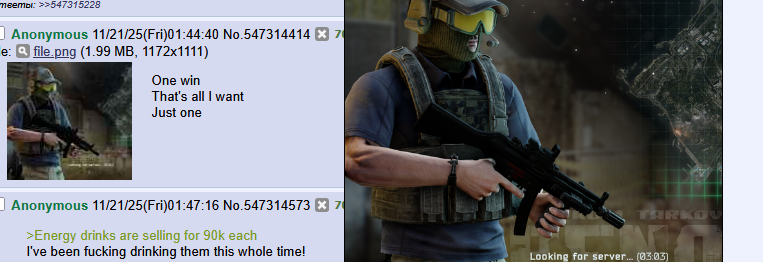 >>50474487 Я уже за 7 лет узнал что такое тарков, я прост обычный подпивас который спокойно играл с барахолкой, а теперь надо еще сильнее душиться и это ту мач уже.