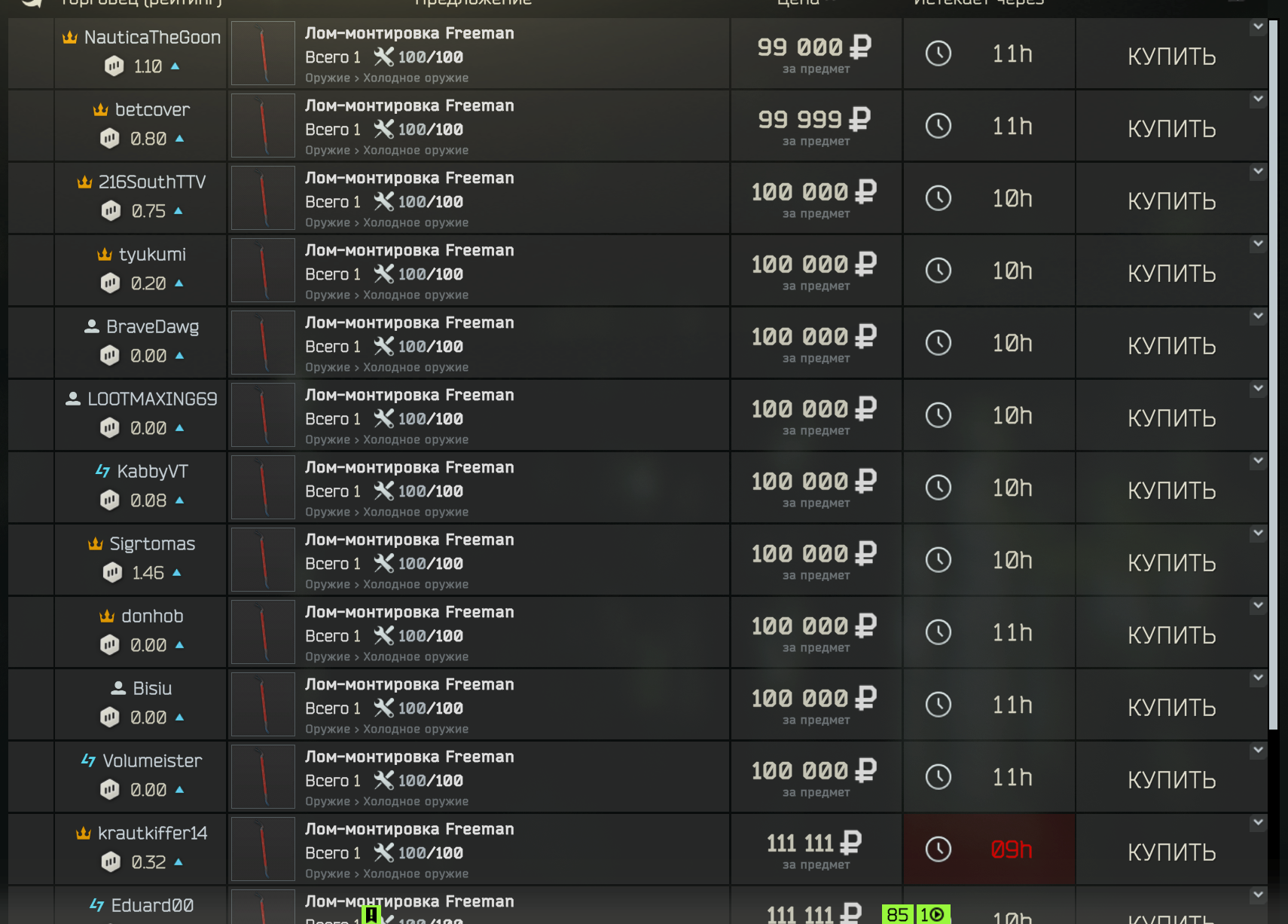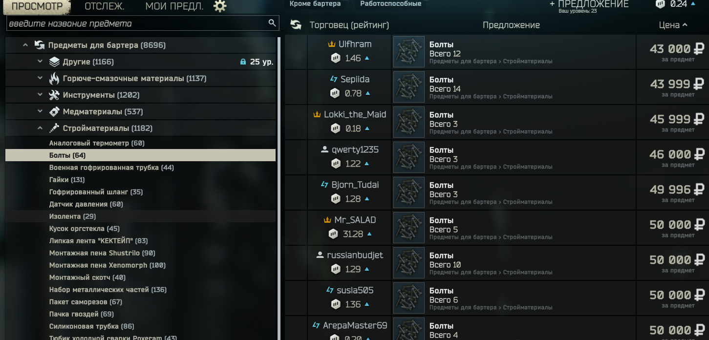 >>50468016 Барахолка и скупщик распространяется на всех игроков в пве в моменте. Полгода назад, когда начали обваливать рынок гранат на барахолке, буквально за доли секунд скупали по 20-30 Ф1. Не успеешь нажать кнопочку - все распродано.