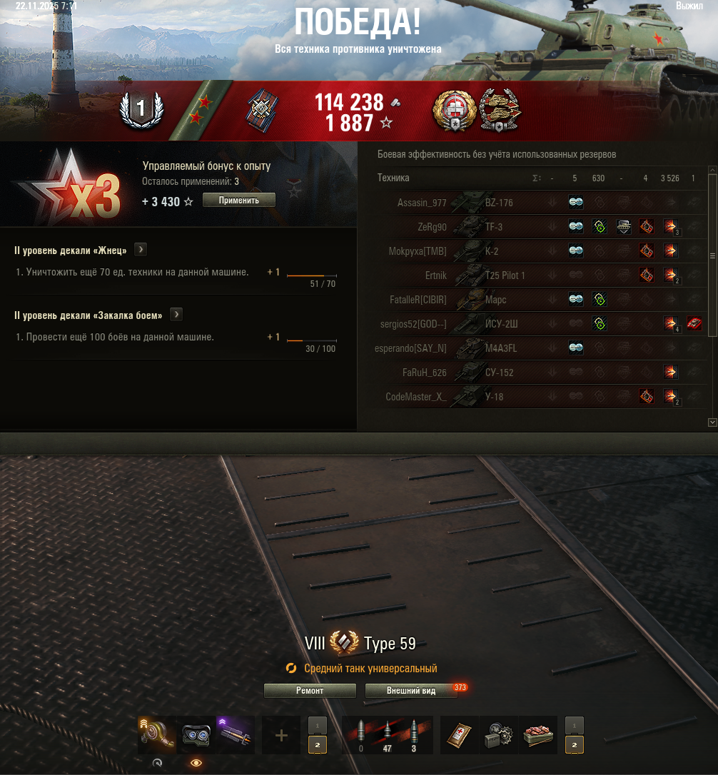 Грустно бля на самом деле, вчера поиграл на калибане сессию, вот это полностью срывающий всю лживость разрабов аппарат, показывающий насколько игра - конченое азино. Вестфилд, холмики: уебал 156-го куда-то в лючок (?), разумеется вообще без сводки, чел явно охуел и сместился в другое место. Приехал бз176 и я его 2 раза на фулочку ебнул тоже куда-то в район крыши, лол, вот это я рукастый нагибун. Следующий бой - в борта с близкого расстояния из 5 тычек только 1 раз пробил на 400, ну и 2 раза что-то в районе 80 хепе снял, потом в Елку попал, ну просто попал, как это часто бывает. Играешь, блядь, бой и уже 1500 должно быть, а там ноль. И еще говорят что это танковый шутер, хех, ну как бы да, шутер, но такой своеобразный, сбоку еще ручка для вращения.