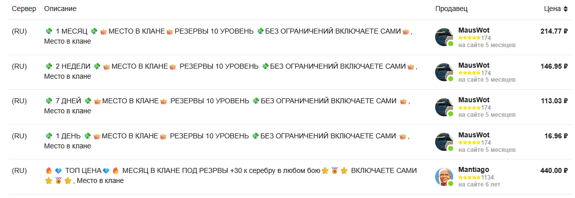 >>50480494 >>50480499 Ах да. Еще активные кланы зарабатывают на том, что продают места в своём клане, дают возможность пофармить под резервами. По факту деньги за нихуя, ведь резервы они так и так подрубают. Вчера скрин кидал, цены в районе 300-500 деревянных в месяц.