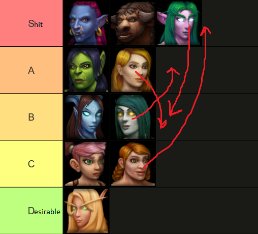 >>50471351 Дренейки вывозят на харизме, чел. Хуй знает, мне жопа нравится, на остальное похуй. Войдишки тоже есть в наличии, Но без души, слишком костлявые.