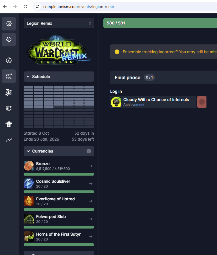 >>50493552 Ну и ты невовремя вкатился ещё, все адекваты уже зафармили сезон и дропнули, а следующий только в марте будет уже в новом аддоне. Сейчас только фому дрочить в ремиксе и всё. Ну и на следующей неделе ещё мини-патч с домами и бойцовской гильдией выйдет.