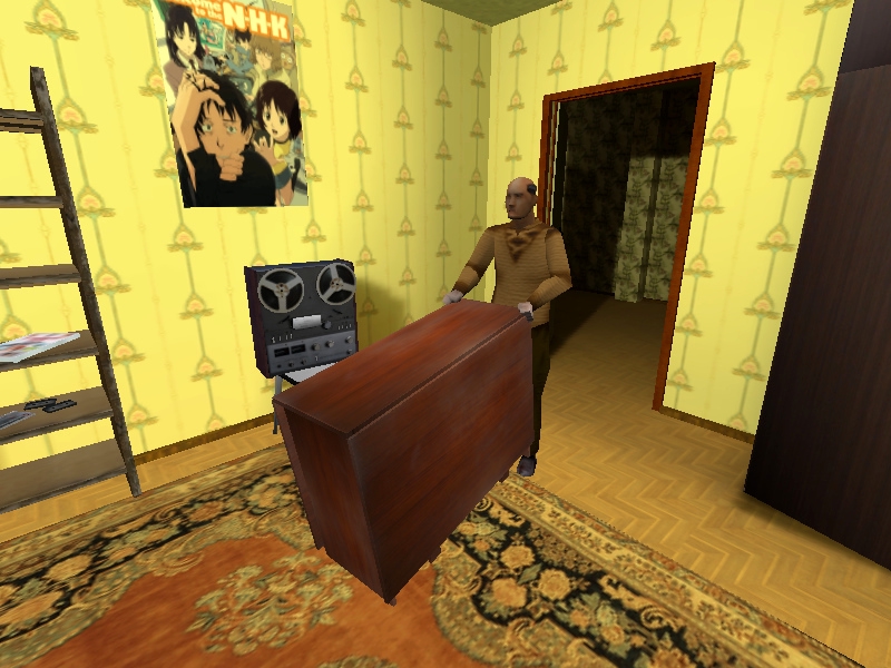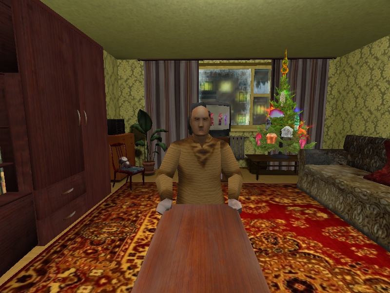 Суть игры: ходишь по ламповой квартире, тупишь в телевизор, читаешь книжки, выполняешь поручения мамки (жми Е на нее). На ПКМ включается приближение. Из глюков: Я познаю мир НЛО на первой карте не переключает страницы почему-то, на второй карте работает нормально. Все реализовать не успел даже близко: пердящий батя с обоями, посиделки в туалете, больше каналов, возможность полежать с Леной в обнимку, рабочий компутер, стелс мимо гостей и возможность их обоссать, побег с Мику в Совенок, нежый секс с новогодней Кобылкой. А так вроде работает и проходится. Всех сычей-хикканов с Новым Годом и приятной игры!