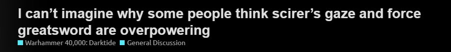 Таки купил себе скам-длц и хочу сказать что класс вышел заебись, такой амфетаминовый торчок с соответствующим геймплеем, в треде зря пиздели, вышло и тематически и геймплейно намного лучше унылого мента. Еще и шмотки бесплатные выглядят стильно и дорого-бохато. >>50578101 >у недавно начавшей альфа-тестирование Темной Ереси все будет еще лучше А потом уже анонсированный Тотал Вар 40к... >>50579428 >соевом По сравнению с современными играми торгаш буквально как игра из девяностых, никакой соевости там и в помине нет. >>50576687 >как водится уёбищные Армагеддонцев же дали, чего тебе еще надо, собака?