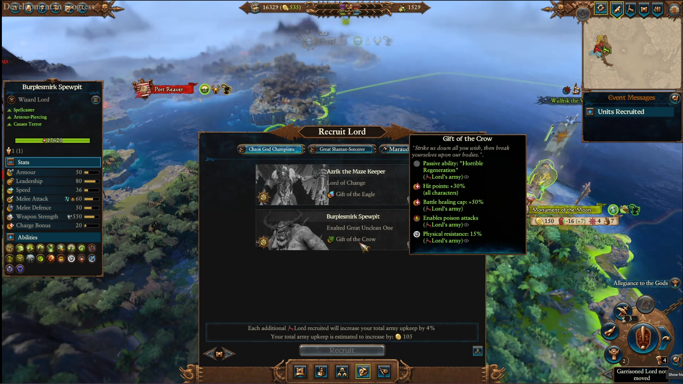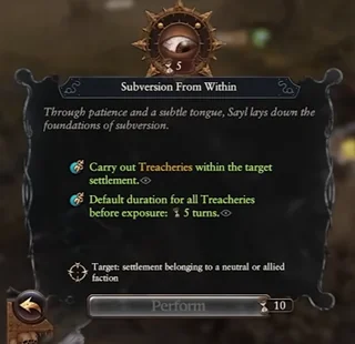 Sayl can also target his own armies for Manipulation, enabling them to instantly complete one turn of any global and local recruitment they’re undertaking, summoning armies for battle support, or sacrificing a Marauder unit to summon a Greater Daemon in their place.
