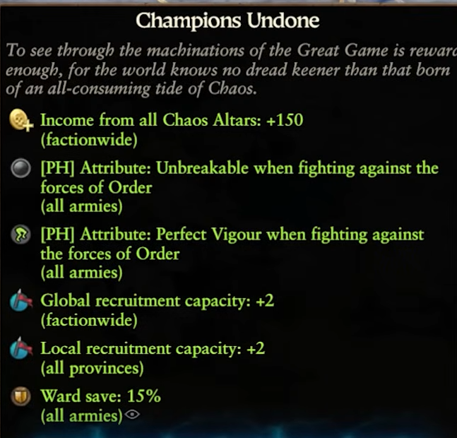 Остальное всё дубли уже существующих возможностей. Сокращать на 1 ход набор в армии может Карл за престиж, блокировать на карте могут те же тзинчиты за книжки в велиих переменах. Призывать армии тем более ничего нового.
