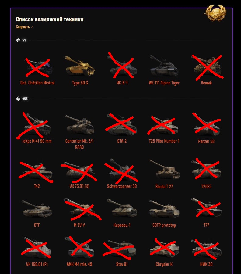 >>50482913 О ебать, это где ты за 30 млн серы можешь прокрутить себе танки, и купить их. Около бесплатный стоит 18млн и их всего 4 штуки. Обычно 1-2 хороших и 2 затычки. А есть за гойду, их тоже 4 штуки, их можно сверхредко купить за 1 серебро, но обычно за золото 10500-11500. Как то так.