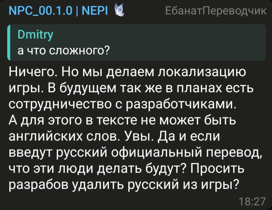 >>50487909 >ну извини что тебе сопельки посморкаться и попу подтирать не бегают разрабы Извинения за ошибку, когда раздали куче людей, в том числе стримерам пиарящим игру, баны на 10 лет, а после прислали письма с автоответом от чатгпт, что ошибки нету это подтирать сопельки? Ты либо клоун, либо терпильный скот. По твоей логике, если тебя по ошибке забанят на 10 лет в игре в которую ты закидываешь бабки, то ты хуй забьешь и не напишешь им об этом. Совсем от комиссий мозги сжижились. >работой с твитерным комьюнити Могли бы и в игре через внутренние объявления об этом написать. Проблема то не в этом. >у тебя нету денег Я и есть та платёжеспособная аудитория. Потрогай траву или хуй на крайний случай. Иначе как можно дефать скотское отношение к комьюнити я не могу понять. Сам то понимаешь за что воюешь?