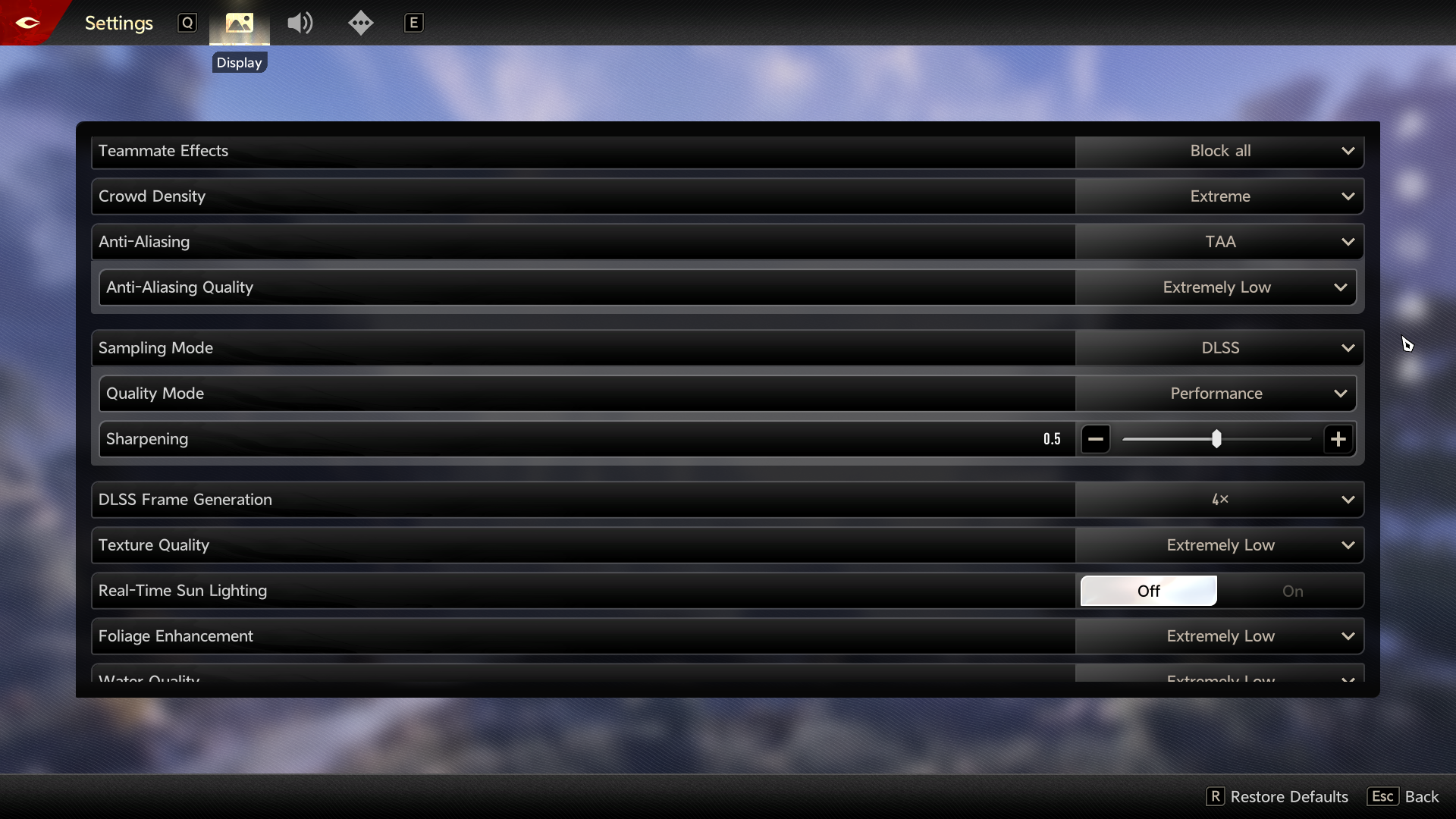 >>50499918 Удивительно, но неплохо для старичка-бюджетки на ультрах. В замесах 80-100 после компиляции всех шейдеров эффектов. В городе ожидаемая просадка из-за нипов и геометрии. Но всё равно упор в проц судя по ваттам на видюхе (разгон фиксом + 2х16 DR 3600cl18 с пережатыми таймингами). Играбельно, оставляем.