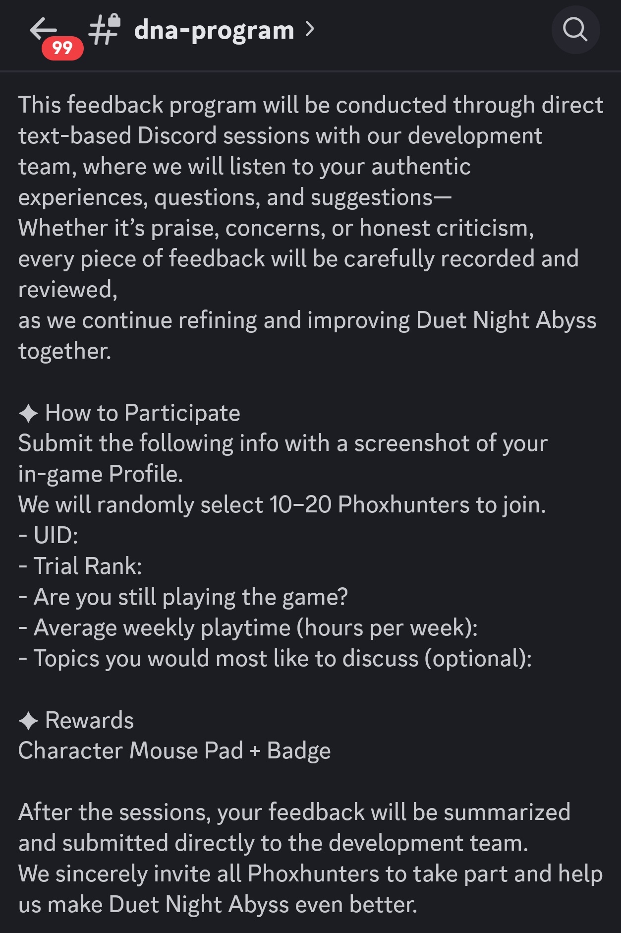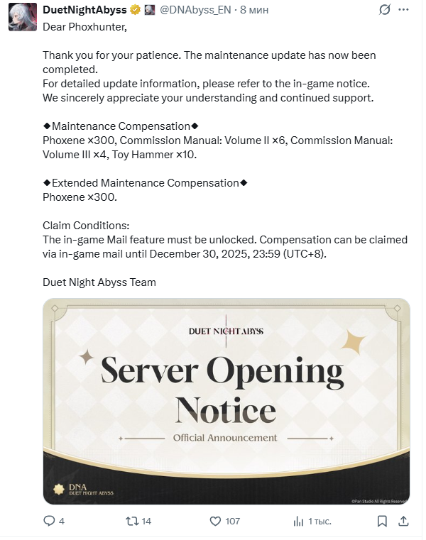 Не смотря на скорость треда пока я остаюсь заинтересован в игре, то буду продолжать срать в него потихоньку разным. Давайте обсудим новую обратную связь от разработчика: https://x.com/DNAbyss_EN/status/2005941989993243018 Про фиксы театра мы уже видели по внутриигровым уведомлениям.