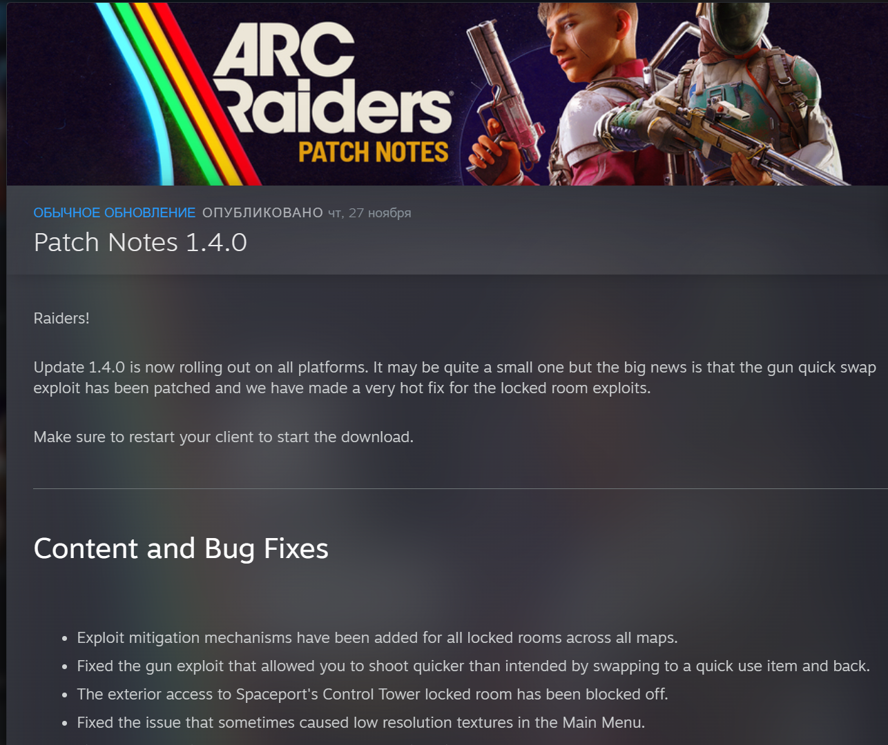 ARC Raiders – многопользовательская игра жанра extraction adventure, действие которой разворачивается в суровом будущем на Земле, атакованной загадочными механическими захватчиками ARC. Разработчиками являются "Embark Studios", известные по онлайн-шутеру The Finals. Готовим монатки к отправке за пределы "Ржавого ремня", ищем себе развлечения до обновы, джамшутим в спину доверчивым арковчанам. https://steamcommunity.com/chat/invite/jp4g0ivd - арковчанский уголок в Сперанске (steam version), можно искать тиммейтов там или пообщаться с Джонклером.