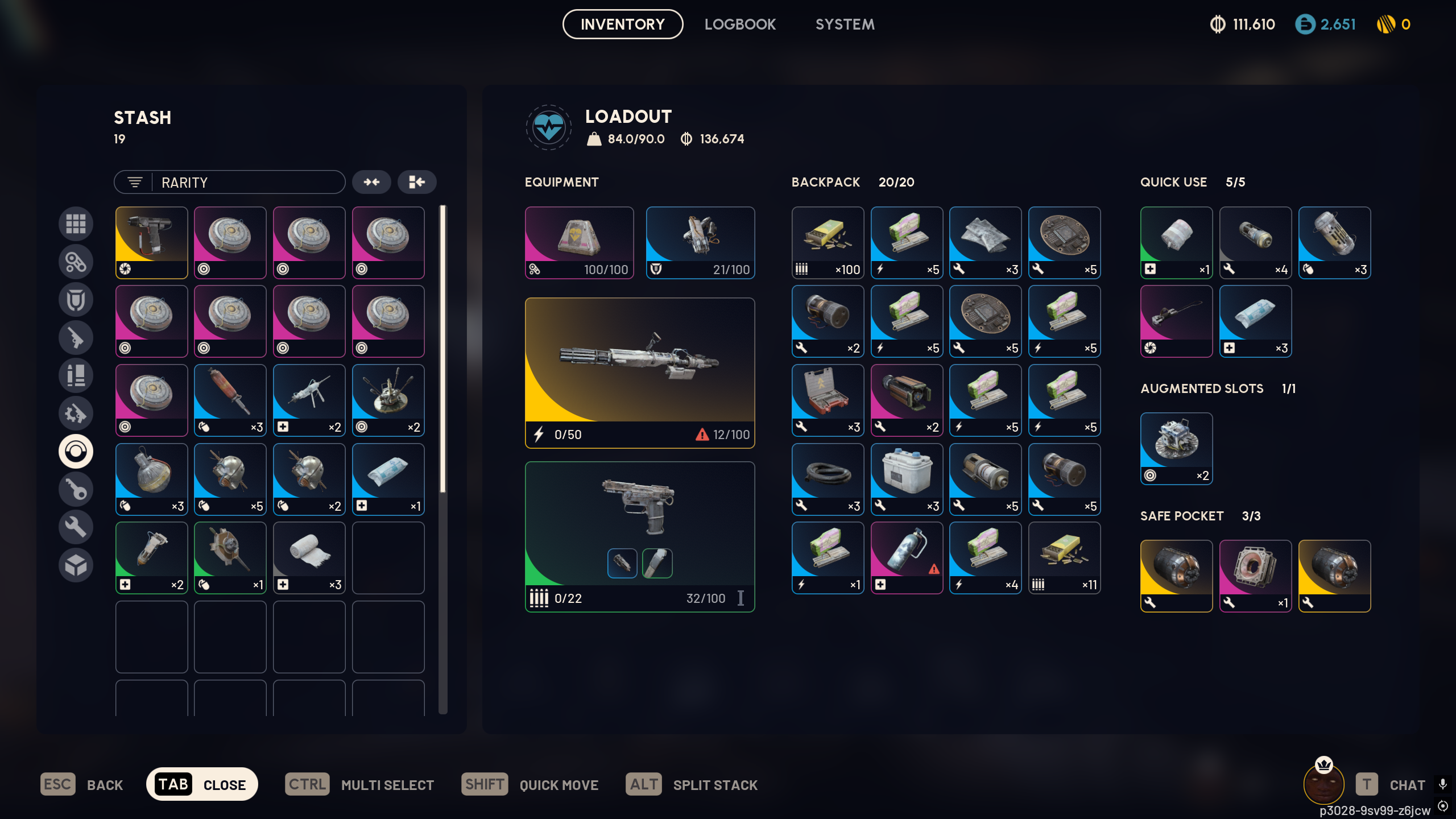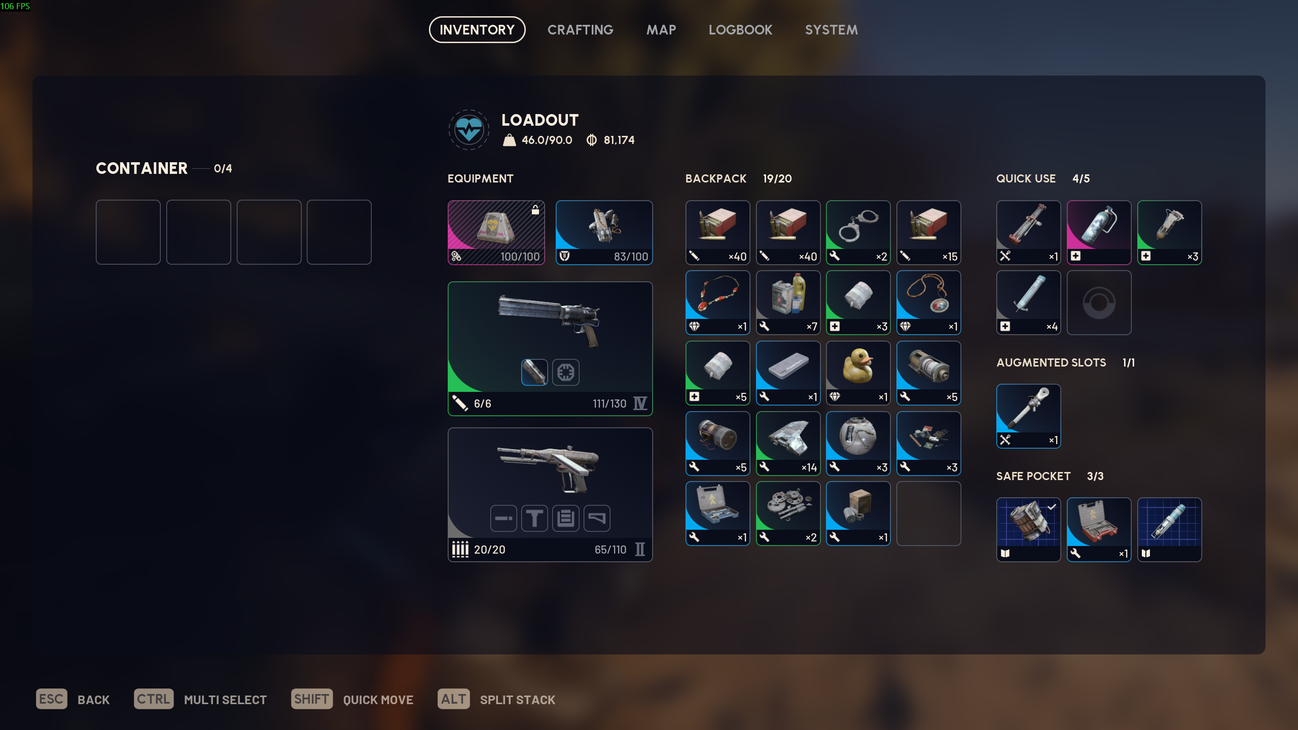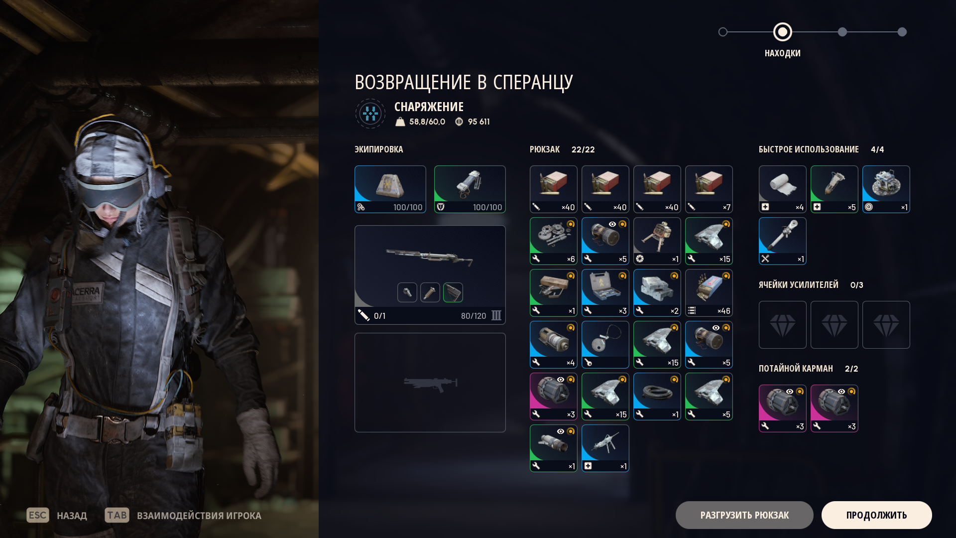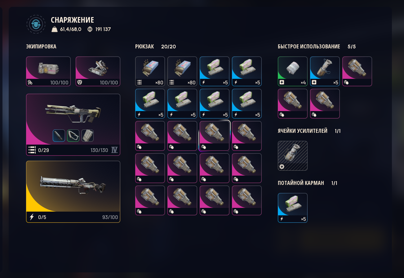 я хожу в гире за 20-30 в среднем: лайт шилд, добыча 2, анвил 1, стичер 2, по пачке патронов на каждый, 5 бинтов, 2 речарджа и вульфпак в очке.