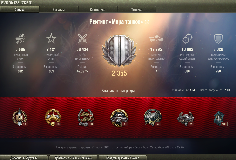 всем здасте, пока лежал со спиной и немог играть в танки я долго думал и вспомнил что у меня есть твинк хотя какой нахуй твинк просто аккаунт второй который я тоже 15 лет назад сделал что бы играть только в песке первого уровня. Вспомнил какая там была почта, восстановил активировал КОД ВОЗВРАЩЕНЦА и мне его защитало кстати НО нет, как всегда наебали на ровном месте, я зашел в игру и сразу пошла танковая академия за каким то хуем, я посмотрел профиль а там все обнулено, никаких прем танков нет за возвращение акаунт вообще без боев и дата регистрации сегодняшний день. Вот и вернул твинка называется . Я вообще думал что он на варгеях остался но там по этой почте нет акков а на лесте был