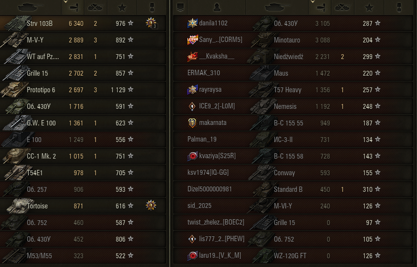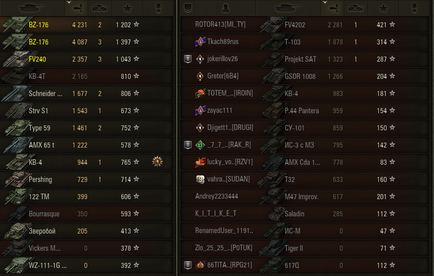 >>50504626 Не, я на разных танках играю. У меня на американском т34 всегда 0 урона, самый картонный танк, не понимаю как играть. Вот на чем я обычно играю: Ис-7, Супер-Конь, WZ111 A5, E77, Мышь, AMX mle 49, Tornvagn.