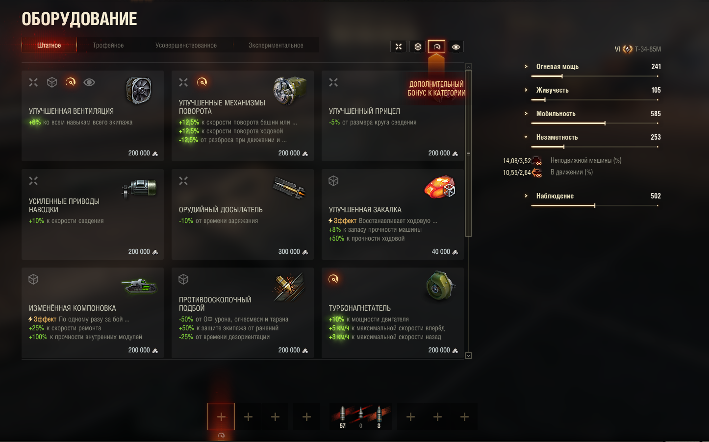 >>50494754 В танке сумируемые проценты с каждым допом сверху отчитываются от прошлого значения то бишь вентиль плюс бб дадут не 10% а 9.95% например, но значения динамики наоборот дает повышенные значения от каждого допа сверху та же мощность двигателя или поворот корпуса башни, а чем быстрее поворачиваешь тем выше шанс рикошета от картона до титаниума - собственно колеса так и работают что резина снаряд съедает тому что там всё дергается туда сюда с какой то невероятной скоростью. Но игра конечно не обязывает всё это знать тому что для алкашей и ис7 с трубами и сеткой, какая разница что ставить если после слива победа после победы слив после точного выстрела земля а после земли точный.