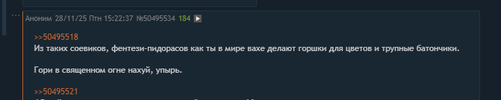 >>50495534 >Из таких соевиков, фентези-пидорасов как ты в мире вахе делают горшки для цветов и трупные батончики. >Гори в священном огне нахуй, упырь. Бля, вот из-за таких вот уебков ваху ненавидят во всех фандомов. Неадекваты какие-то. Мимовахабрат-адекват
