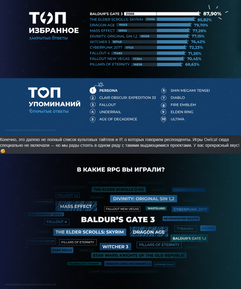 Новости: 1) Релизнулся большой патч 1.5 для РТ - ребаланс, переработка колоний и еще много-много всего! 2) В разработке следующая игра совокотов по вселенной Warhammer 40000 - Dark Heresy. Альфа-тест ждем в следующем месяце https://darkheresy.owlcat.games/news/ru/8 Анонсирующий трейлер: https://www.youtube.com/watch?v=mmfu_Spm-6U 3) Первое длц для RT, с компаньоном-ассасинкой культа смерти и расширением корабля — вышло. Второе длц, с компаньоном-негром-арбитесом-пидорасом и его летающим киберпетушатником — вышло и оказалось полным калом. Третье длц про Тразина Неисчислимого и его бляцкий музей запланирован на апрель–июнь 2026 года. Четвёртое длц про космическую помойку запланировано на июль–сентябрь 2026 года. Релизный трейлер Void Shadows: https://www.youtube.com/watch?v=hsgKGORxxXc Релизный трейлер Lex Imperialis: https://www.youtube.com/watch?v=Dh9lu23PCiA 4) Owlcat представила The Expanse: Osiris Reborn, будущая Аction RPG по вселенной Экспансии. Анонсирующий трейлер: https://www.youtube.com/watch?v=pIQifuOTTe8 5) Патч 2.5 для ВОТР с реворком мифика Золотого дракона вышел, заодно появилась GOTY версия со всеми контентными дополнениями. Это последнее добавление контента в игру. Кто ждал финального релиза - это он.