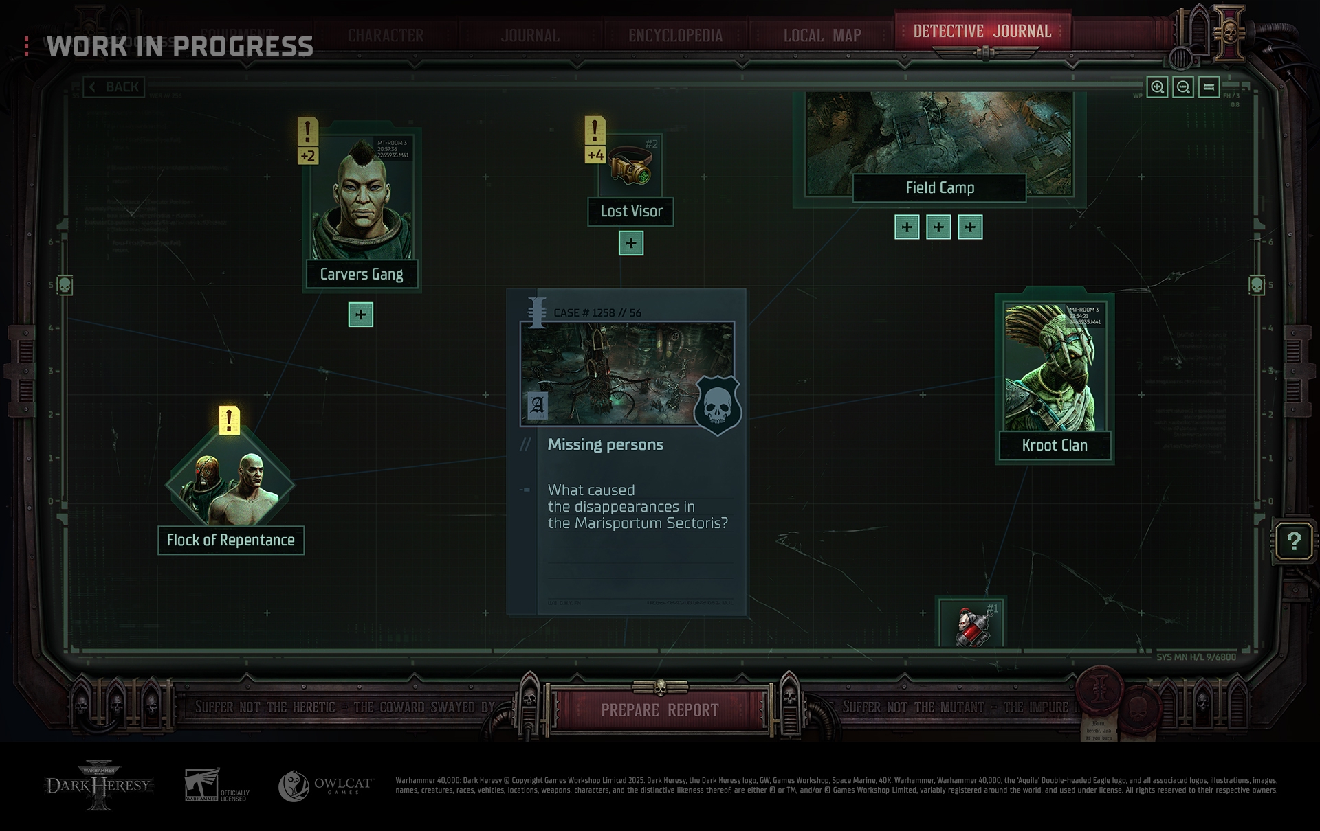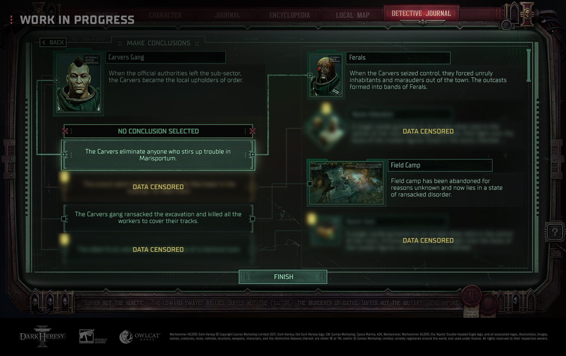 >>50512910 В ереси это логичнее,мы ищем улики и несостыковки в том или ином деле на протяжении всей игры,шарясь в помойках и во всяких сломанных когитаторах.