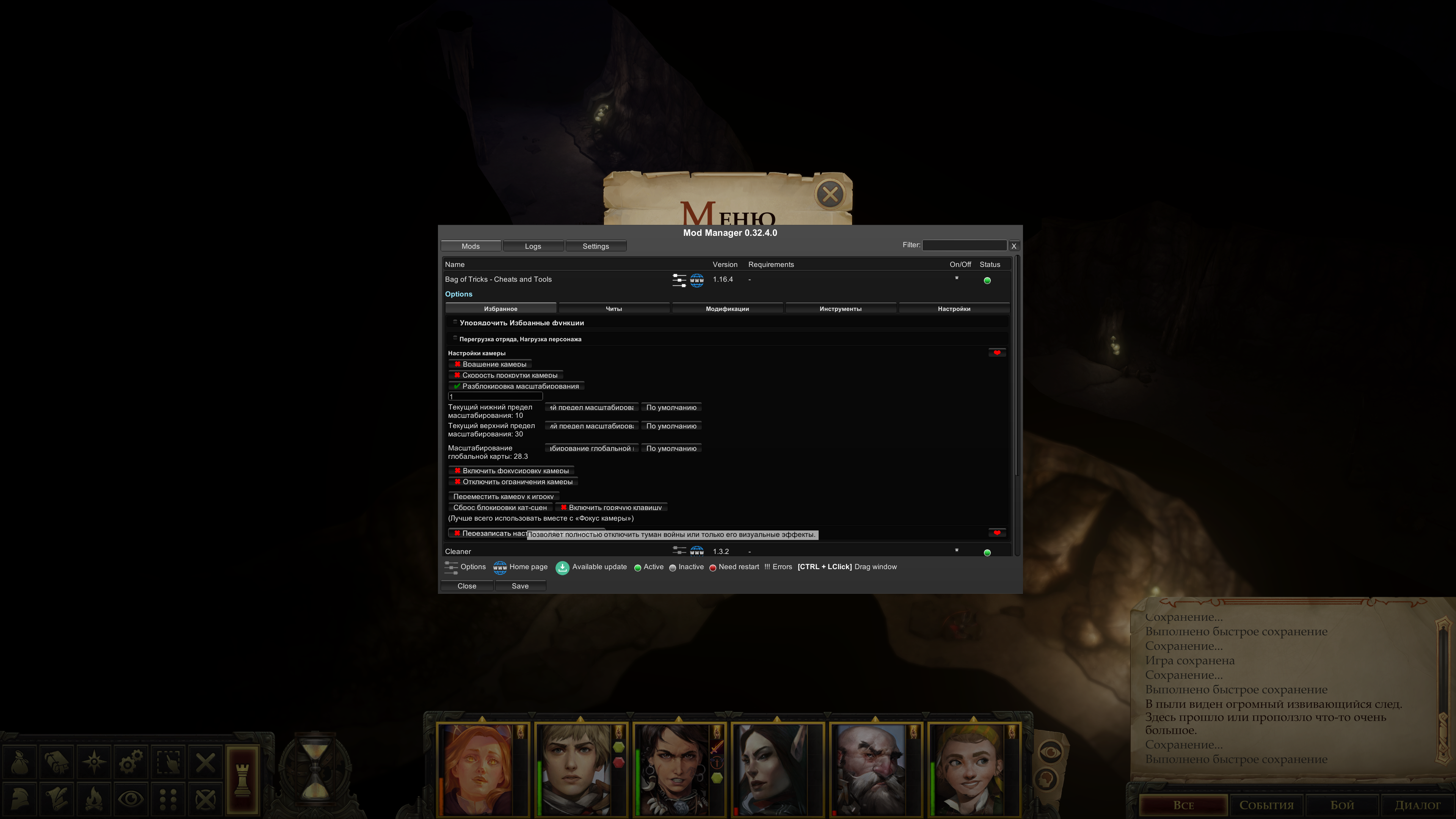 Скачал мод Bag of Tricks. Там есть опция выключить туман войны. Пытаюсь отключить туман войны на игровом экране в уже исследованных частях локации, но при этом оставить туман войны на карте в частях локации в которых не был.