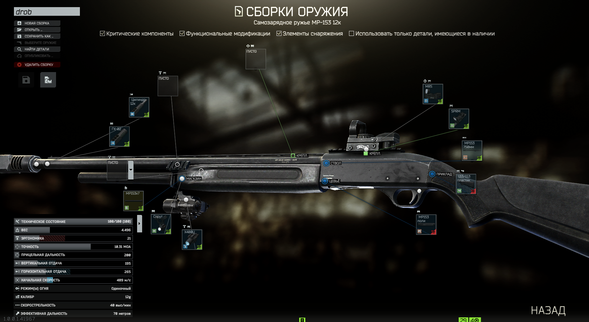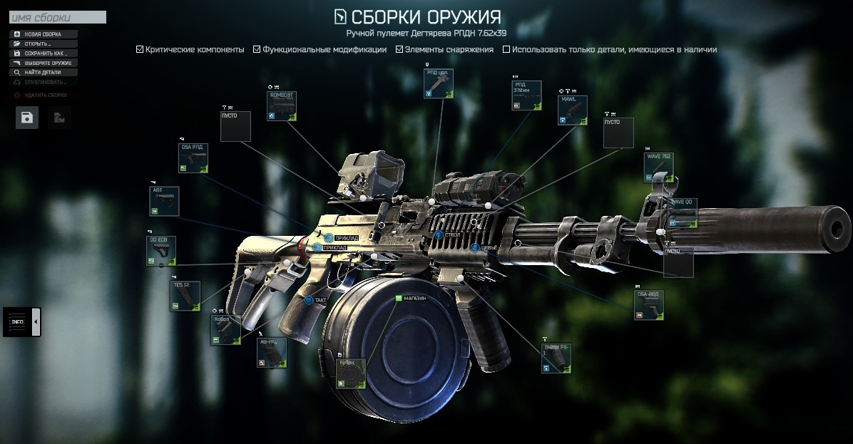 Я хз даже. 1. Очевидные АЕКи. Раз уж летальность попаданий в игре низкая и скорострельность роляет - нормальные скорострельй автомат под наши промежуточные, а не очередное мутировавшее уебище. 2. РПК. Десятки калашей есть, а этих уебищ нет. 3. Вертикалку. Эстетика, хули. 4. АДС. Красивый. 5. АСВК... 6. ...и "баррет", хули нет-то? 7. ВССК Выхлоп. Красивая. 8. М249. Пулемет под 5.56, известный. 9. Бизон. Мемный шнековый магаз. 10. М79 и переделки (крафт можно запилить!) ГП-25 под отдельное оружие. Ну и еще нахуй не нужный, но распространенный (росгвардия с ними бегает) и прикольно выглядящий ПП-2000, СВУ-АС - хоть и вроде как малораспространенная и уебищная, но красивая и с автоогнем вариация СВД, DP-12 и P50 - уебища, но Таркову подходят, как и помпы с отъемными магазами, вроде ИЖ-81КМ.