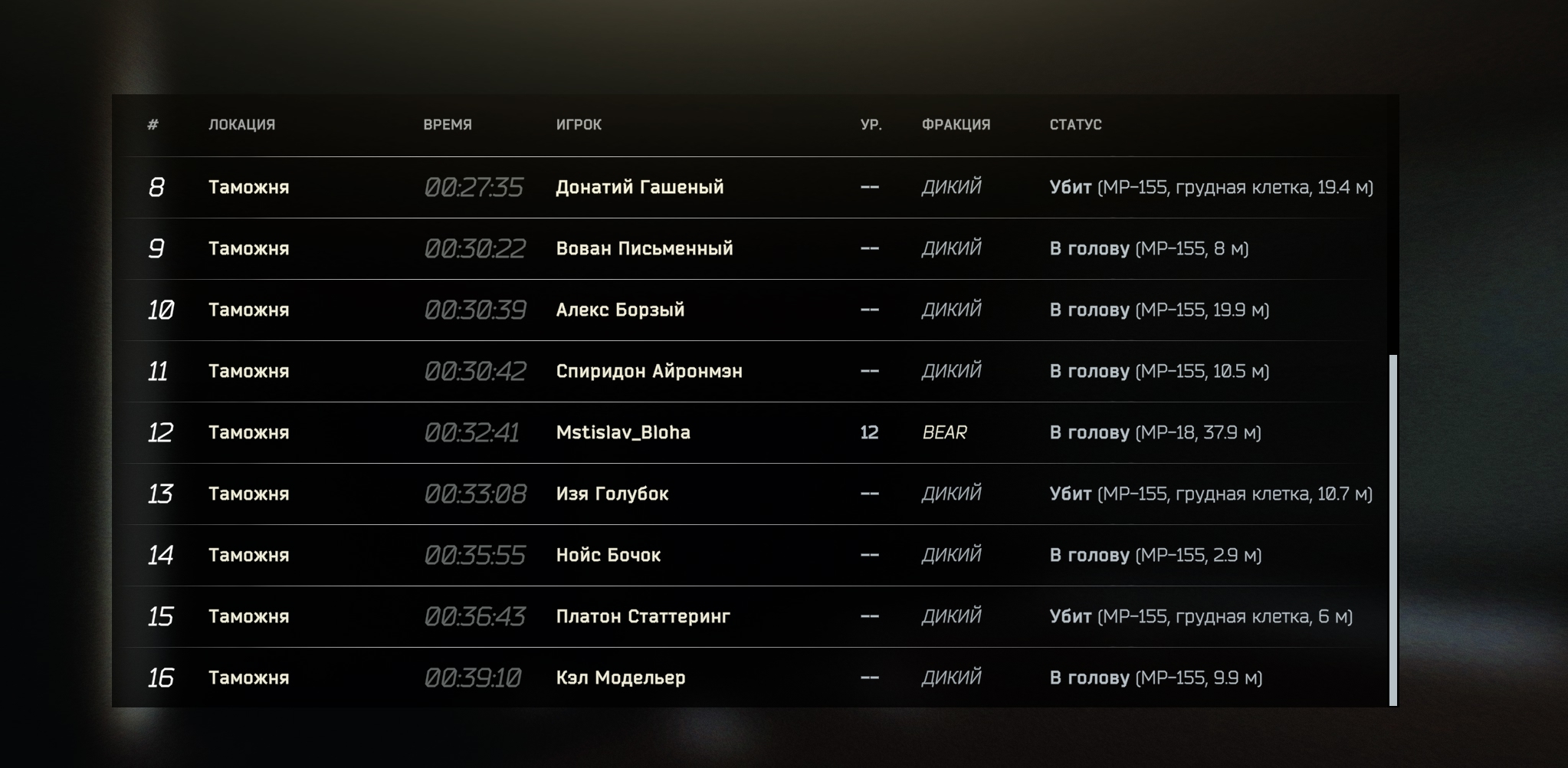 Ещё я ходил по таможне, но как и в лесу, а даже и меньше я чувствовал, что это не моя карта. Так же я посещал улицы таркова. Там я становился кустокамнем в подъездах, и конечно же если кто тревожил мой подъезд ДО красного таймера мне приходилось стрелять с макарова в затылок таким залётным... В основном это были дикии, но пару раз я так уббил и ЧВКшников, но опять же... не со зла, и не из подлых побуждений, я просто пытался спасти свою цифровую жизнь там...