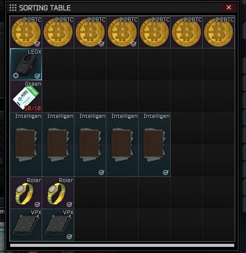 Неэкипируемый лут, в примечаниях указано если он используется в качестве бартера, требуется по квестам или нужен для апгрейда Убежища: https://escapefromtarkov.gamepedia.com/Loot
