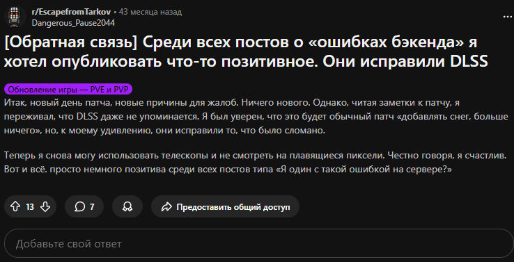 Охуеть рейтинг игры вырос на 5%. 45% это дохуя для таркова. Это успех ящетаю. Думал будет в районе 20% или 10%. Ведь для новых игроков тарков - это просто один сплошной негатив.