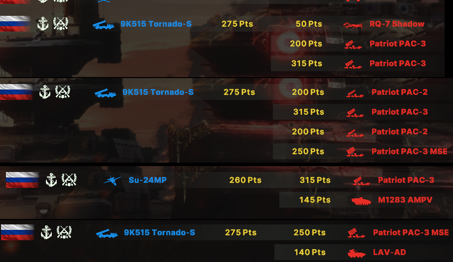 Еще одна дегенерацкая игра - кто-то пикнул Калининград. Тот, кто придумал эту карту - ублюдок. Просто какое-то киберунижение. Американцы просто напохер летают над ПВО, что-то даже удавалось сбить, но это не сильно помогало. Абсолютно дегенерацкая работа ПВО, иногда по 8 ракет с двух установок разряжал, а враг все равно улетал. Особенно прикольно, когда маленький контейнер блокирует на 0,1 секунды обзор и две ракеты улетают в воздух.