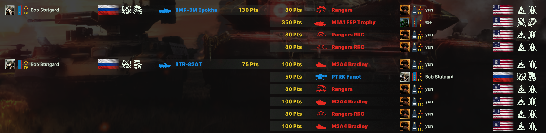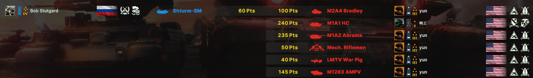 Now Russian units are so over powered that the stats breakdown shows Russian's win significantly more than the U.S. players in every area and with every deck. This game has a lot planned for it but they need to fix balancing before this game becomes abandoned.
