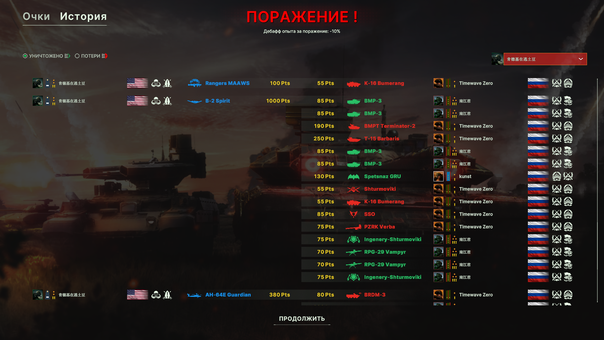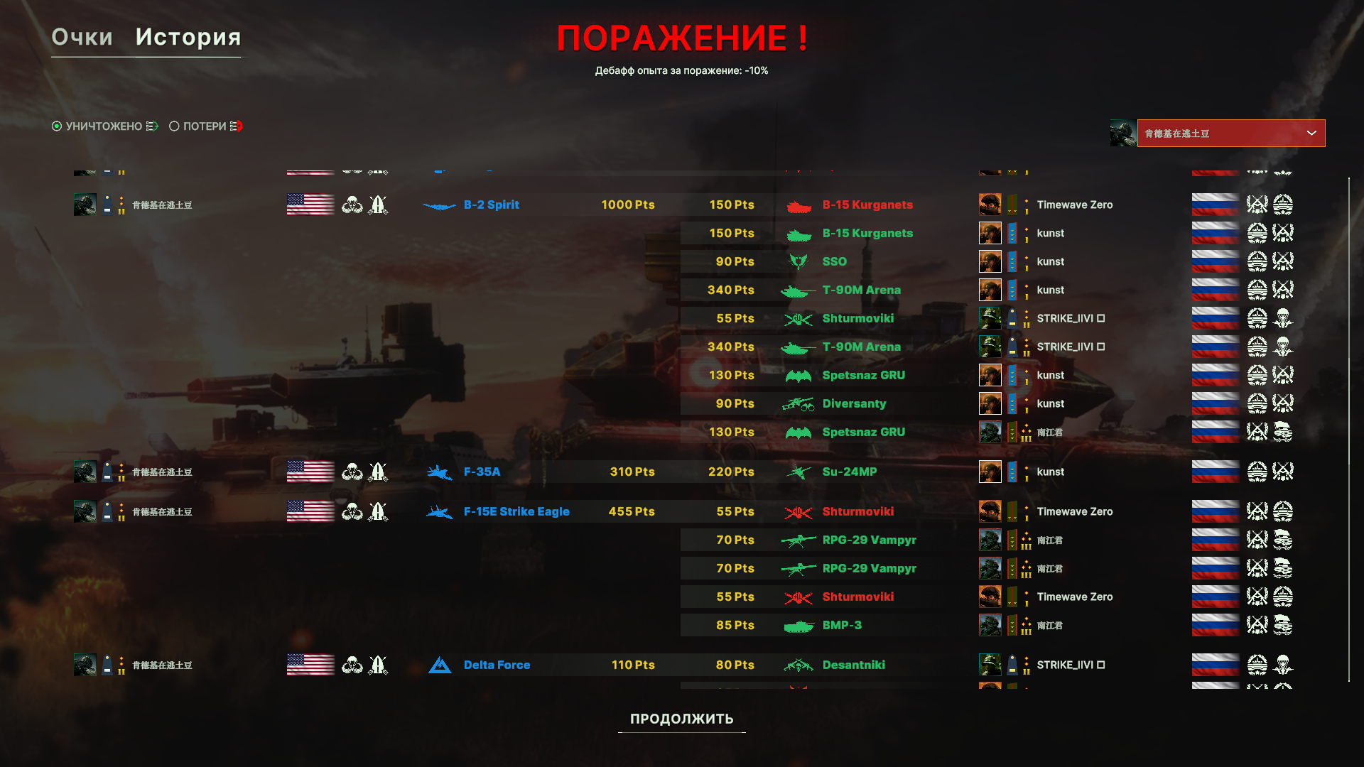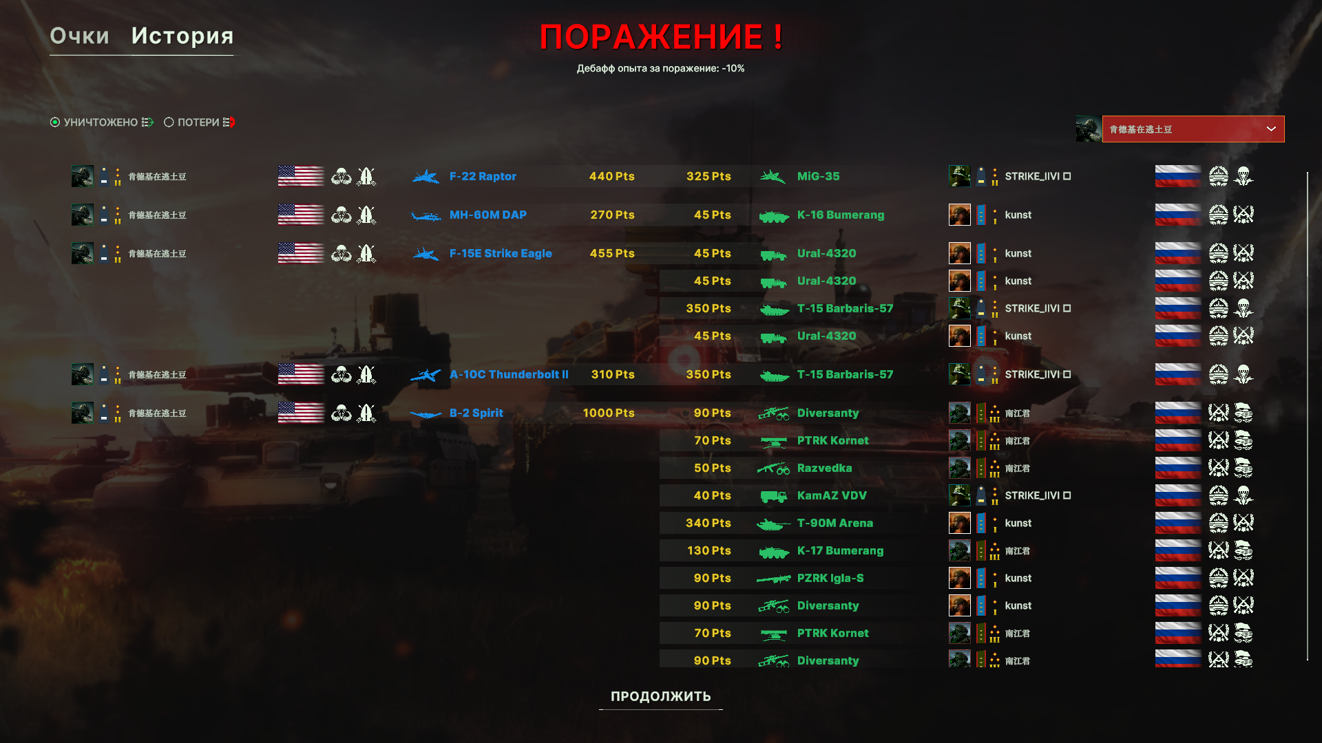 И снова поражение из-за работы авиации противника. ПВО как обычно никуда не попадает. Игра от авиации слишком безболезненна, нужно что-то с этим делать. Из прикольного, наш чел с цифирным ником в какой-то момент просто ушел с фланга.
