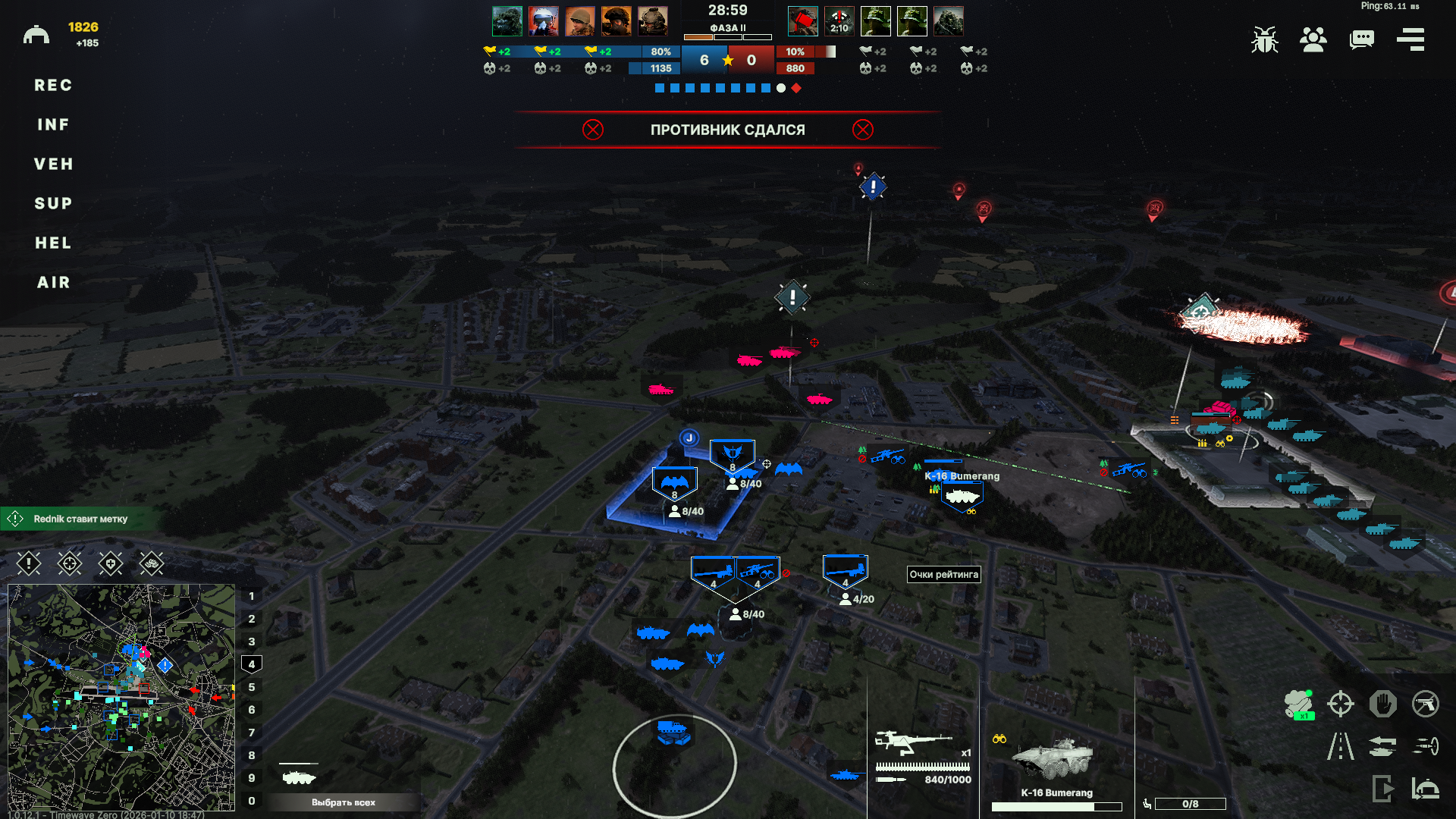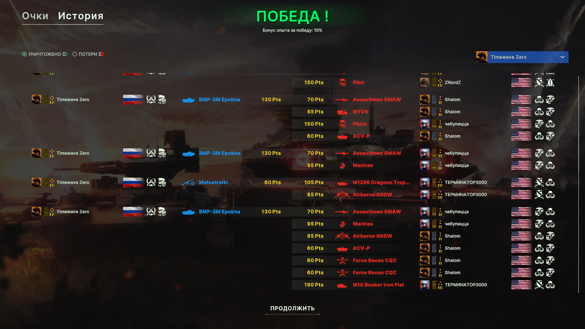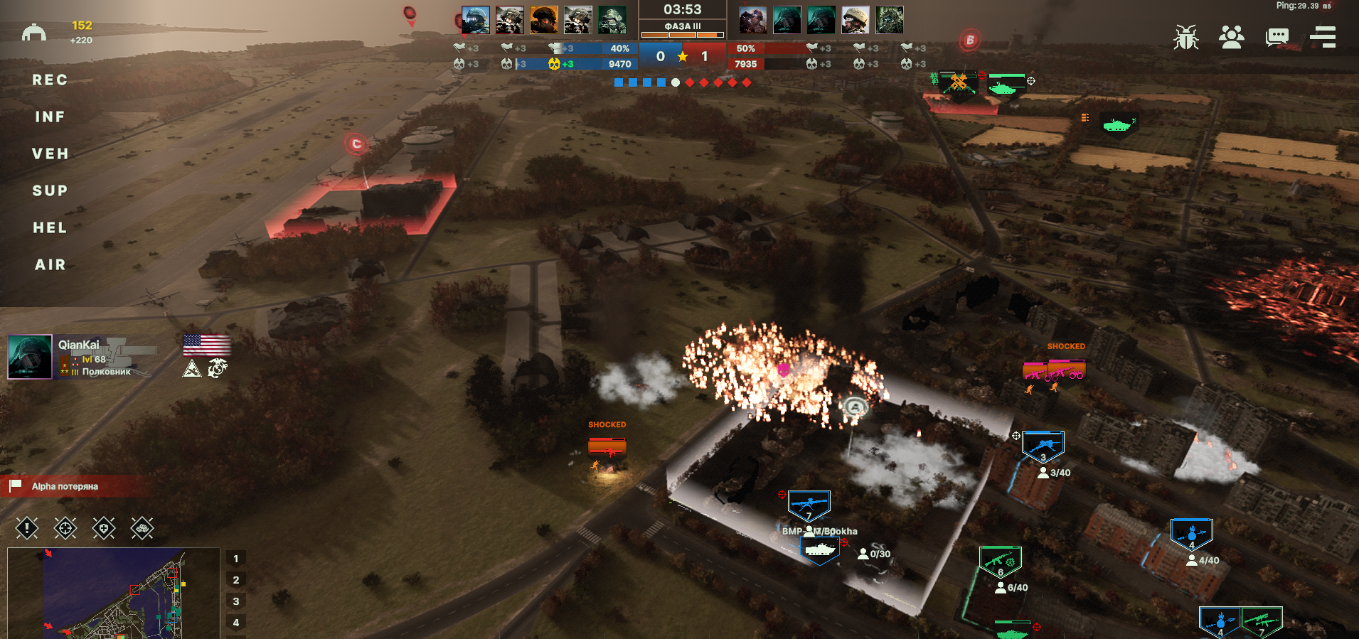 И снова поражение из-за работы авиации противника. ПВО как обычно никуда не попадает. Игра от авиации слишком безболезненна, нужно что-то с этим делать. Из прикольного, наш чел с цифирным ником в какой-то момент просто ушел с фланга.