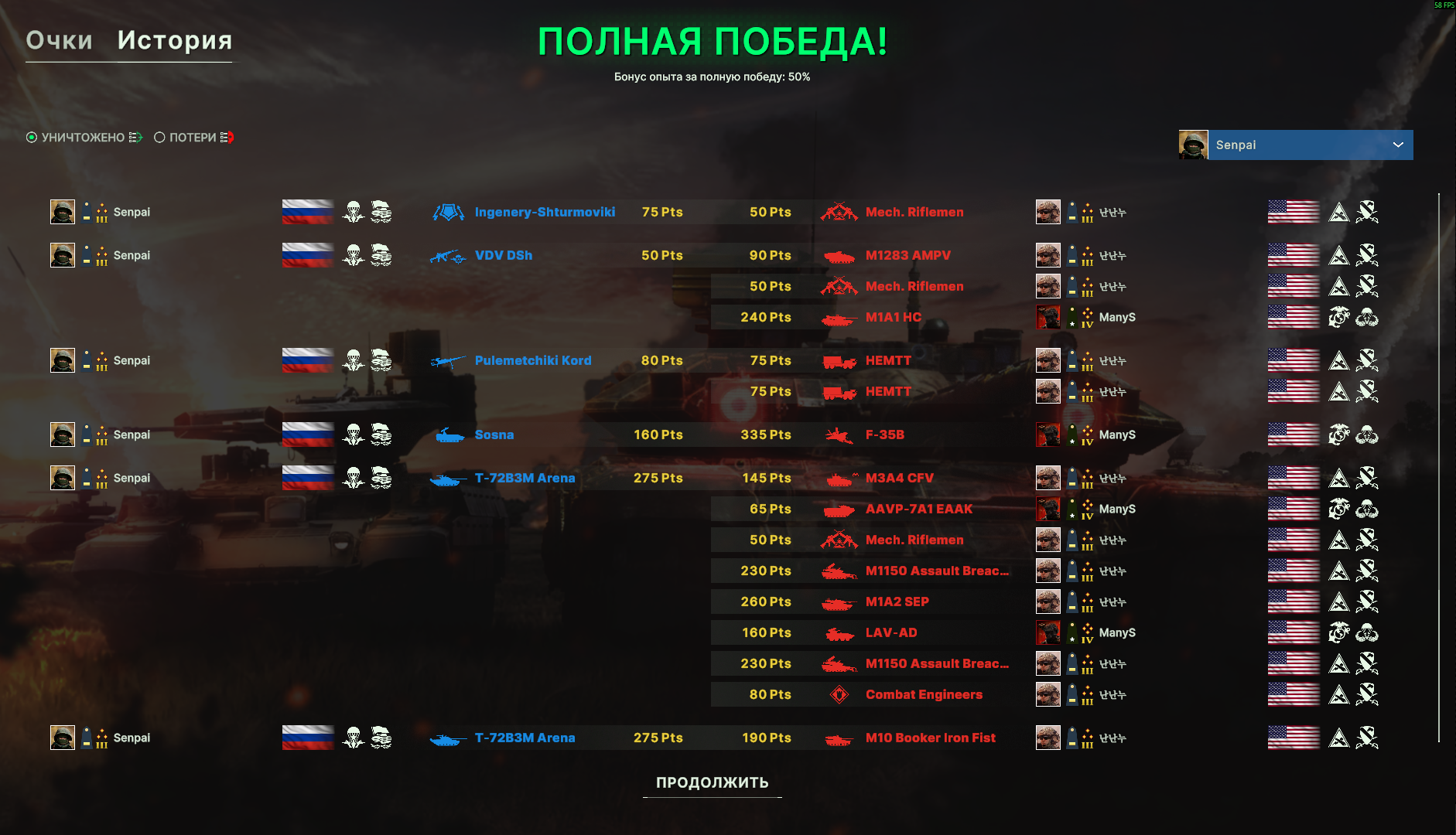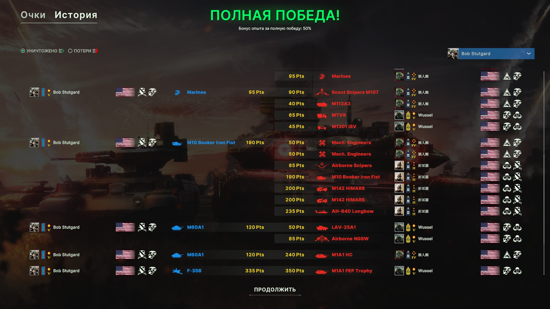 Как обычно терпел на краю карты, в последнем раунде собрались и взяли 6 очков. Американская пехота чудо как хороша - если не морпехи, то десантники, которых тоже хрен убьешь.