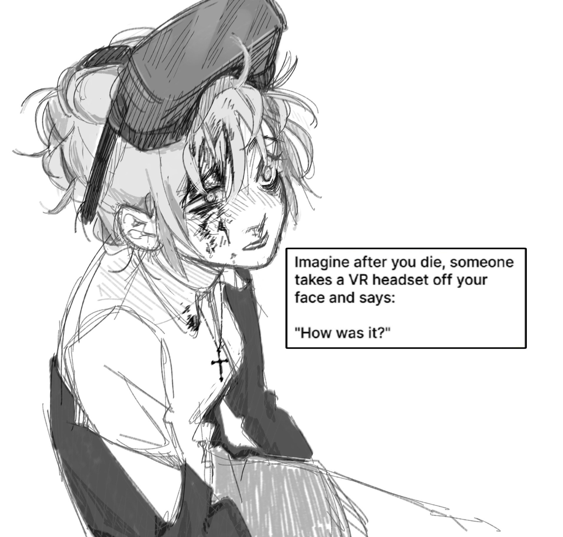>>50655571 >пик 2 А тут изначальная концовка если выбрать "Пожертвовать Клоей". Разрабы сначала хотели чтобы Клоя не умирала от выстрела, а впадала в кому, но потом типа хотели чтобы результаты выбора были более экстремальными (потому что иначе все бы однозначно выбирали эту концовку, у неё тогда почти нет минусов, и даже есть надежда что когда-нибудь Клоя проснётся). А мне вот жаль что в итоге такую концовку не сделоли. Мне кажется она супер логична и хороша ввязывалась бы в концепцию первой игры, что Максин своими силами всё делала только хуже. Если б она Нейтона не остановила от выстрела в Клою, то в тот же день его повязали бы, а на следующий день и Джифферсона. А она в итоге растянула всё на неделю, потенциально убив нескольких людей, а в другой концовке и весь город, лул. А тут вот она дала Клое быть раненой, и хотя она в коме - Максин за всю игру поняла цену дружбы, и больше не будет отлынивать, оставлять Клою одну, а будет ей настоящим другом. Хорошая концовка, зря поменяли.