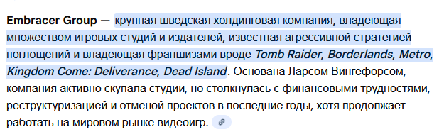 >>50645814 >сквареникс Это же те, которые убили дико успешный (для своего жанра) Деус Экс из-за недовольства продажами, а пару лет назад разогнали студию и отменили чуть ли не почти готовую новую часть?