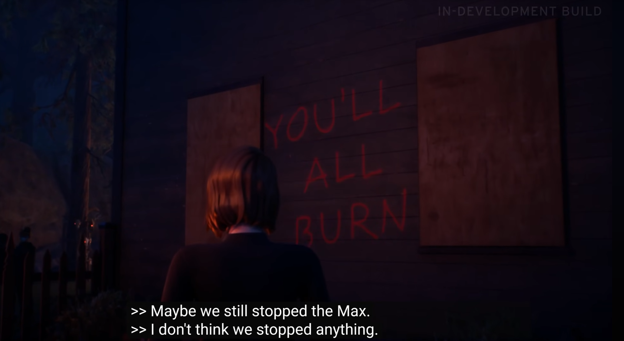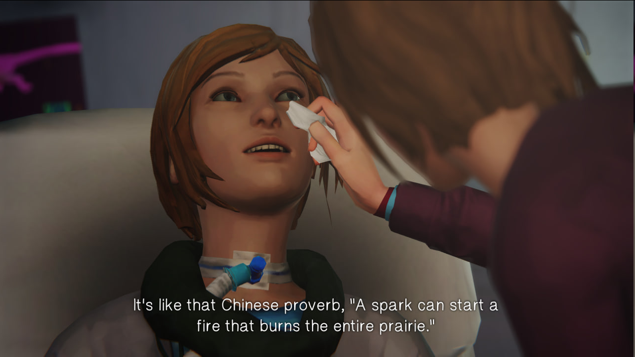 Вдобавок, то, как Рэйчел разжигает пожар - это дополнительный слой метафоры про одинокую искру, звучавшую ещё в оригинальной игре, только применительно к самой Хлое.
