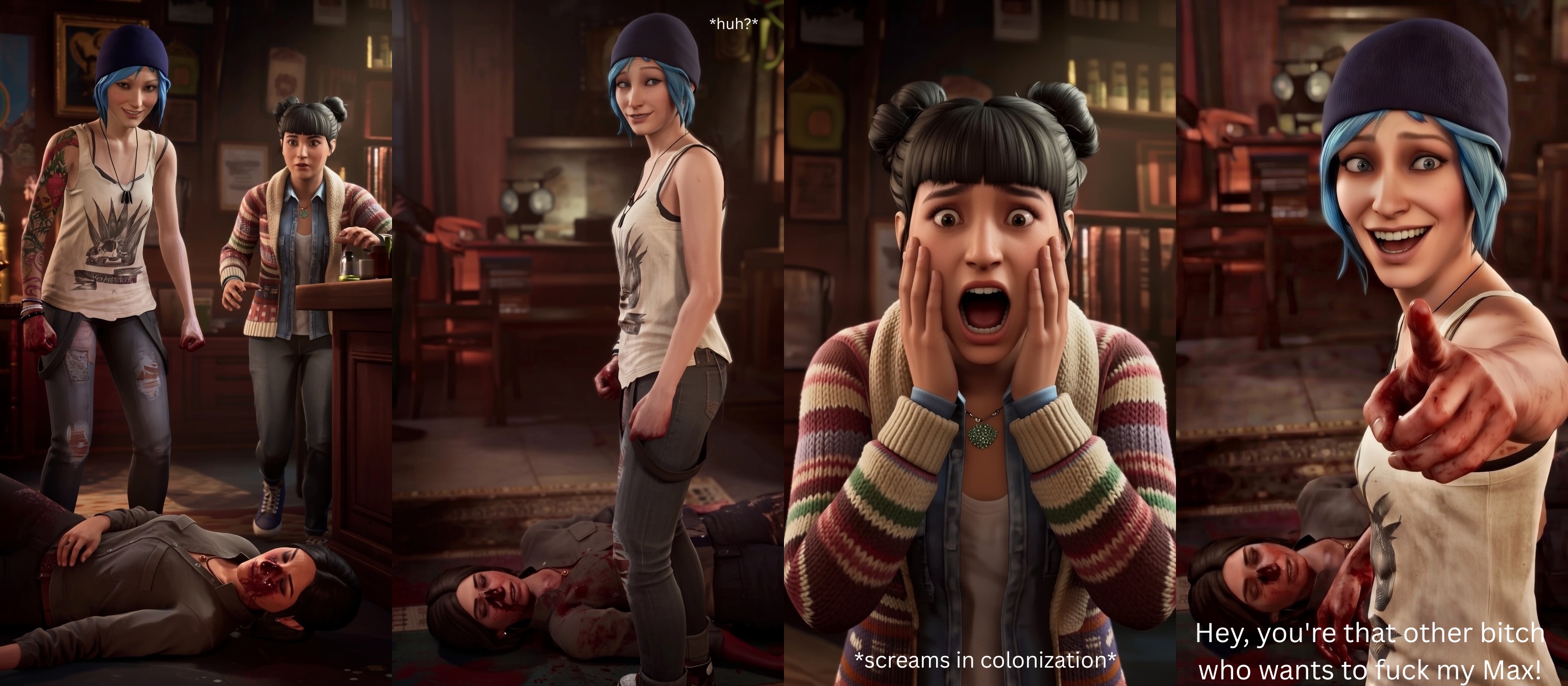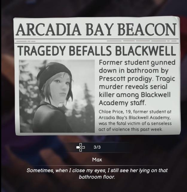 Кстати, они правильно на стриме подметили, в первой игре была Макс и Хлои, во второй только Хлои, в третьей Макс, и в финальной части снова Макс и Хлои, фаталити для фанатов