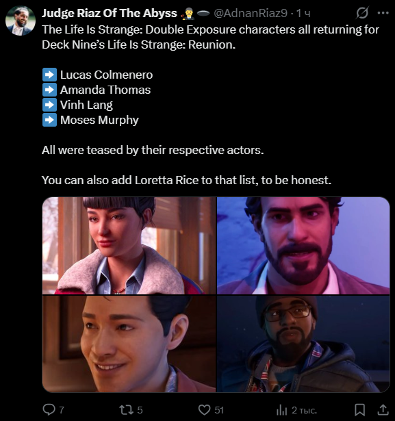 Это первое упоминание Life is Strange: Reunion, однако о разработке сиквела Life is Strange: Double Exposure известно уже какое-то время. Сначала о нём писали инсайдеры, а затем бывшая сотрудница студии Deck Nine, отвечающей за серию. Разработчица тогда заявила, что релиз игры состоится в 2026 году, и после него судьба Deck Nine будет под вопросом, ведь студия не смогла получить контракт на дальнейшие проекты. Если Life is Strange: Reunion уже получила возрастной рейтинг, то это значит, что контент игры готов и её релиз, вероятно, должен состояться в течение полугода-года.