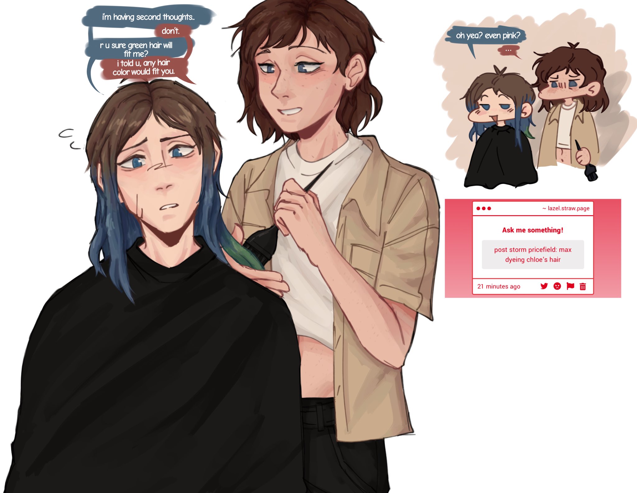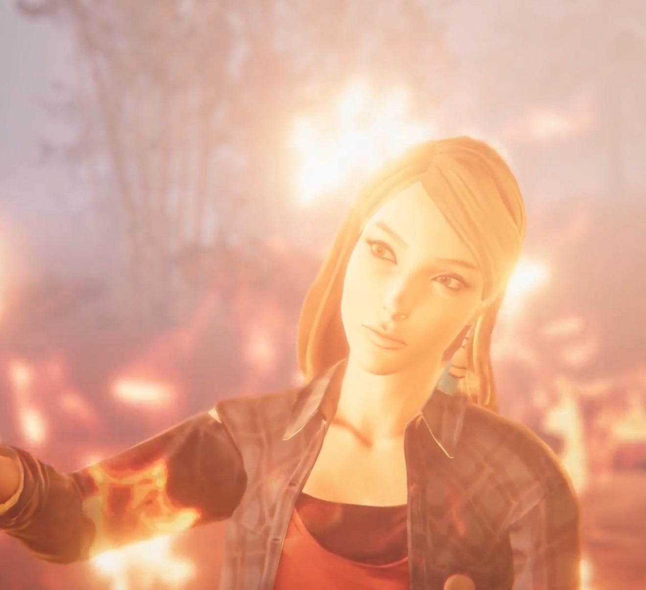А огонь это как раз таки тема Клои - она идёт на концерт фаерволк, она носит футболку с ним, она носит одежду которая буквально называется "cone of fire" в третьей серии, она любит взрывы, постоянно говорит что хочет сжечь Аркадию Бей до тла. Огонь стихия Клои, и это даже наталкивает если честно на мысли что мб мы будем играть как за Максуню, так и за Клою.