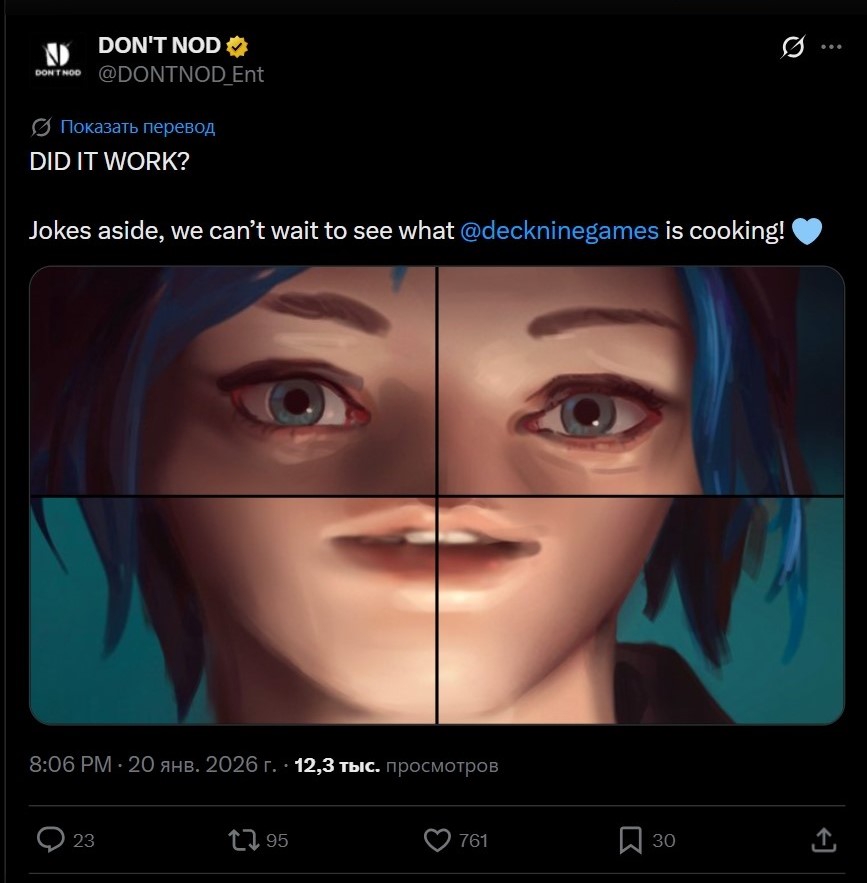 >>50690283 в следующем начнем хотя сейчас всё внимание приковано до марта будет к Реюниону Если только ДонтНод новости о сиквеле лост рекордс не забабахает